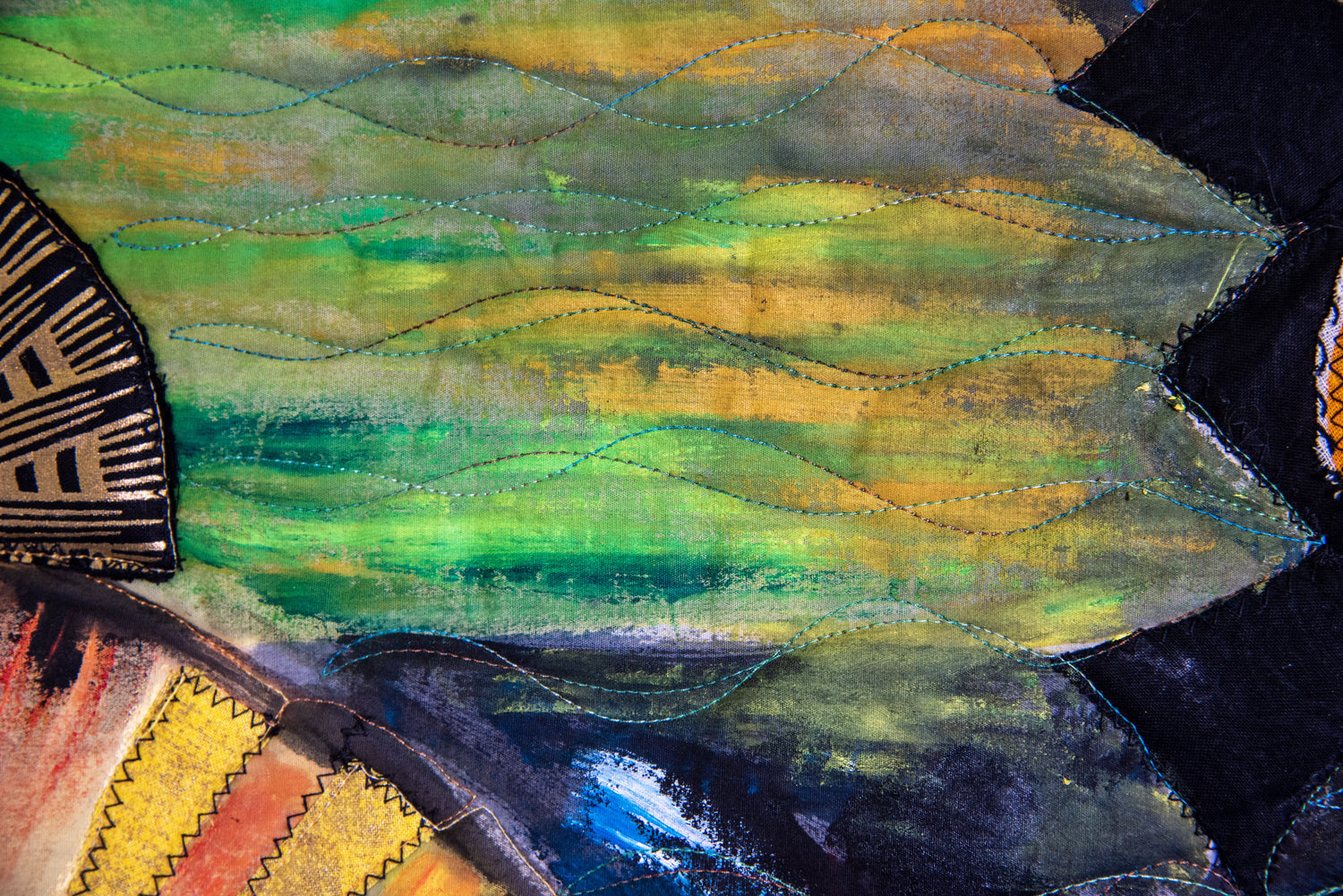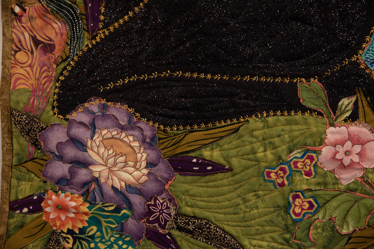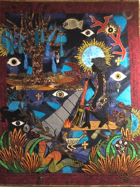 This quilt was made to show in the Magnificent Motown Show at the Kelly Strayhorn Theater in 2021. All of the works were based on the music of Motown. My quilt was based on the song Superstition by Stevie Wonder. The quilt was also shown at the Kenkeleba Gallery in NYC.