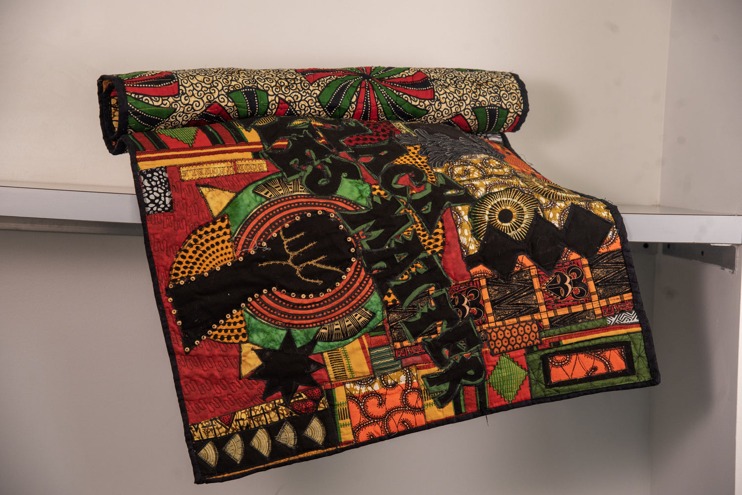 The quilt symbolizes the taking of black lives by extrajudicial means by law enforcement. A reminder that black skin is not weapon.