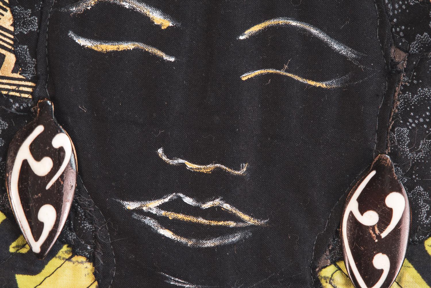 Female portrait inspired by African goddess figures featuring tribal adornment.
